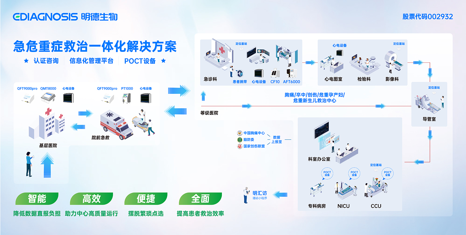 憑借多年深耕急危重癥領(lǐng)域的積累,明德生物推出集“信息管理平臺+POCT設(shè)備+認(rèn)證咨詢”于一體的的Aicare急危重癥救治一體化解決方案,實(shí)現(xiàn)院前急救、院內(nèi)急診、?凭戎巍⒅匕Y監(jiān)護(hù)和院后隨訪的全流程覆蓋。展會首日Aicare急危重癥救治一體化解決方案一經(jīng)發(fā)布,便吸引了眾多參展嘉賓的駐足與咨詢。