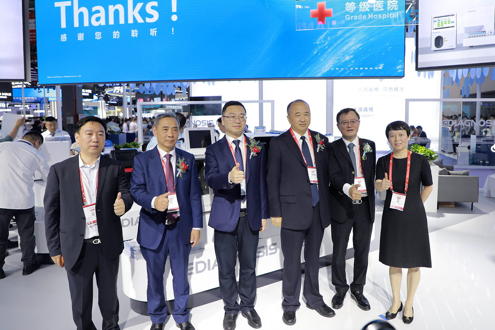 展會首日,南昌市副市長趙捷、國家藥監(jiān)局醫(yī)療器械監(jiān)管司副司長王樹才、全國衛(wèi)生產(chǎn)業(yè)企業(yè)管理協(xié)會醫(yī)學(xué)檢驗(yàn)產(chǎn)業(yè)分會會長宋海波教授、全國衛(wèi)生產(chǎn)業(yè)企業(yè)管理協(xié)會實(shí)驗(yàn)醫(yī)學(xué)分會主任委員王華梁教授一行蒞臨展位,傾聽明德生物Aicare急危重癥救治一體化解決方案的講解。