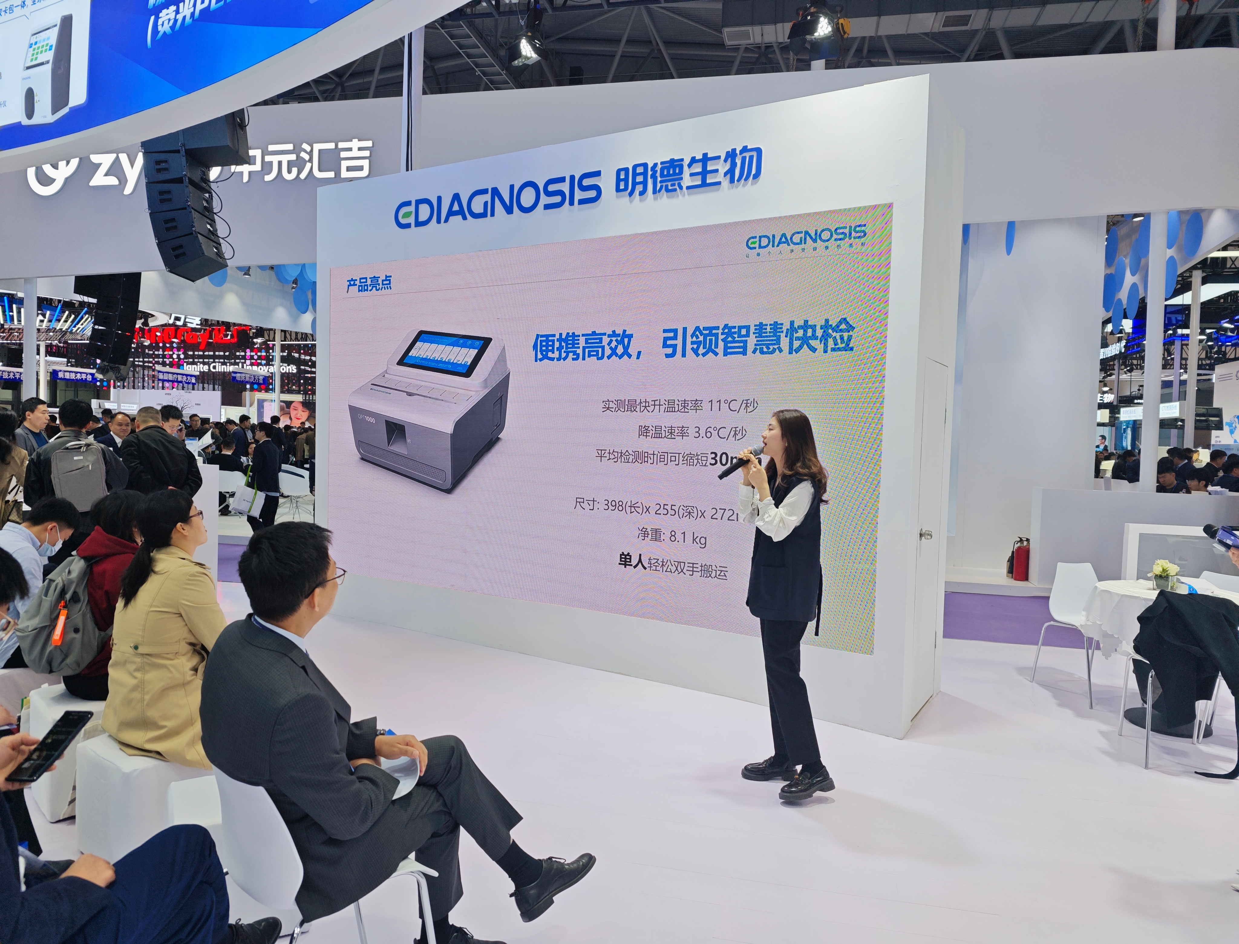 發(fā)布會(huì)現(xiàn)場(chǎng)氣氛熱烈,明德展臺(tái)始終被人流包圍;(dòng)環(huán)節(jié)更是激發(fā)了觀眾的熱情參與,人潮涌動(dòng),展現(xiàn)出了明德生物新品的吸引力。