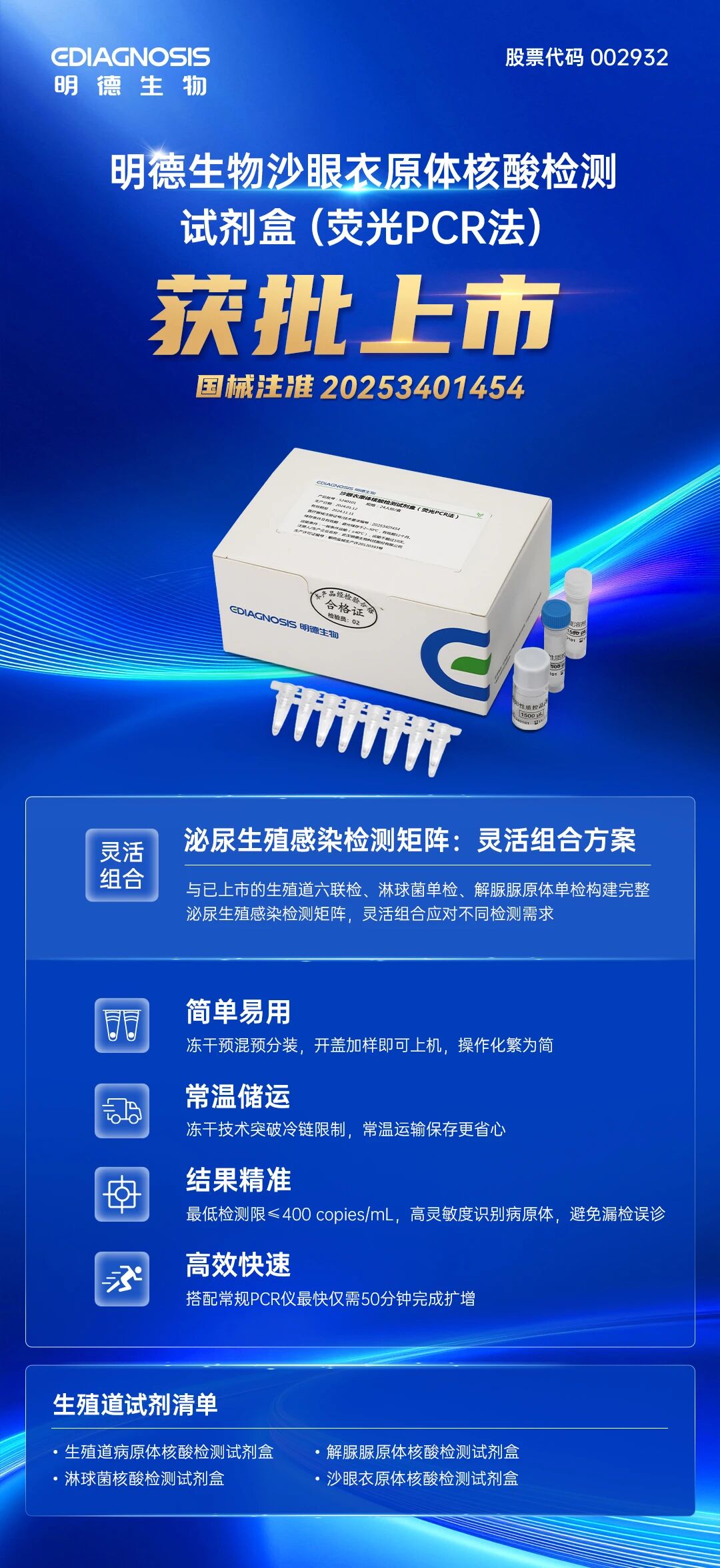 明德生物沙眼衣原體核酸檢測試劑盒上市,簡化生殖感染檢測,方案更靈活