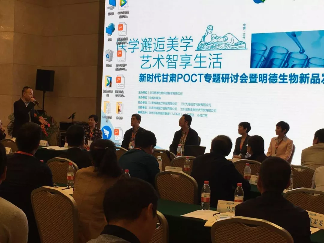 創(chuàng)新即時(shí)診斷、引領(lǐng)智慧醫(yī)療。5月11日,由武漢明德生物科技股份有限公司主辦,檢閱自媒體承辦,甘肅梅高醫(yī)療科技有限公司和蘭州九海醫(yī)療科技有限公司協(xié)辦,甘肅玲瑞醫(yī)療器械有限公司和蘭州創(chuàng)新生物技術(shù)開(kāi)發(fā)有限公司支持的《新時(shí)代甘肅POCT專(zhuān)題研討會(huì)暨明德生物新品發(fā)布會(huì)》在蘭州順利召開(kāi),來(lái)自省內(nèi)外的專(zhuān)家學(xué)者,檢驗(yàn)醫(yī)學(xué)、臨床醫(yī)學(xué)工作者,經(jīng)銷(xiāo)商代表,藝術(shù)家,媒體人,企業(yè)家等120多人歡聚一堂,圍繞POCT的發(fā)展、明德生物戰(zhàn)略、新產(chǎn)品上市、胸痛中心和卒中中心建設(shè)等相關(guān)內(nèi)容進(jìn)行了交流和探討。