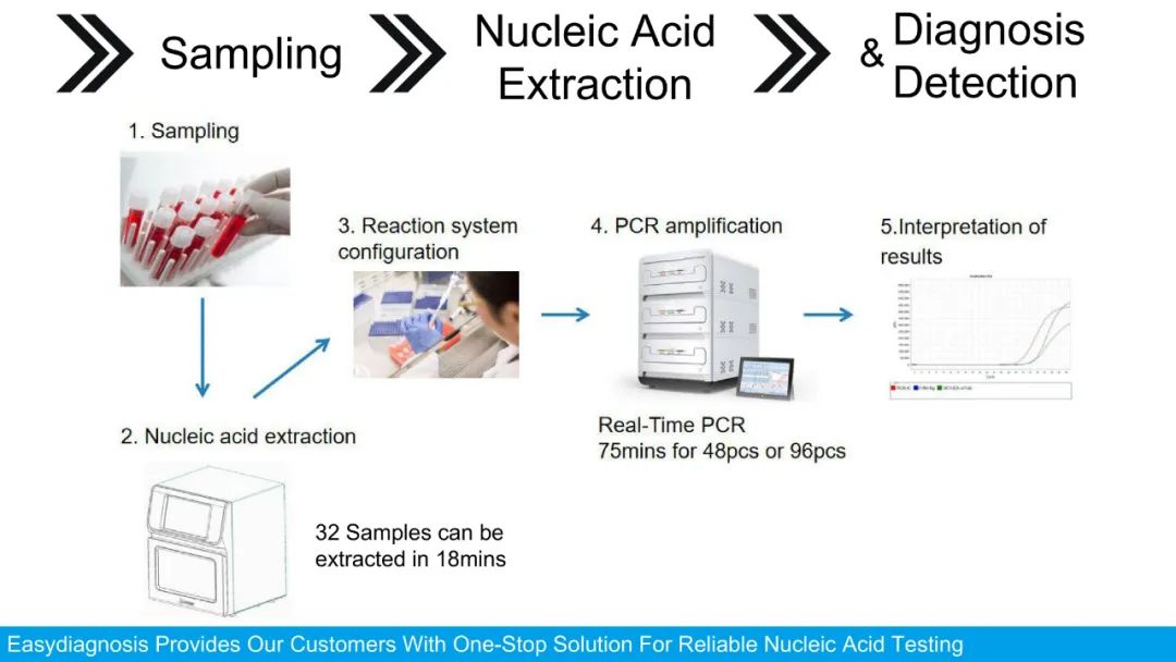同時,明德生物為海內(nèi)外客戶提供了從樣本采集、核酸提取到新型冠狀病毒核酸檢測的一站式解決方案,具體如下: